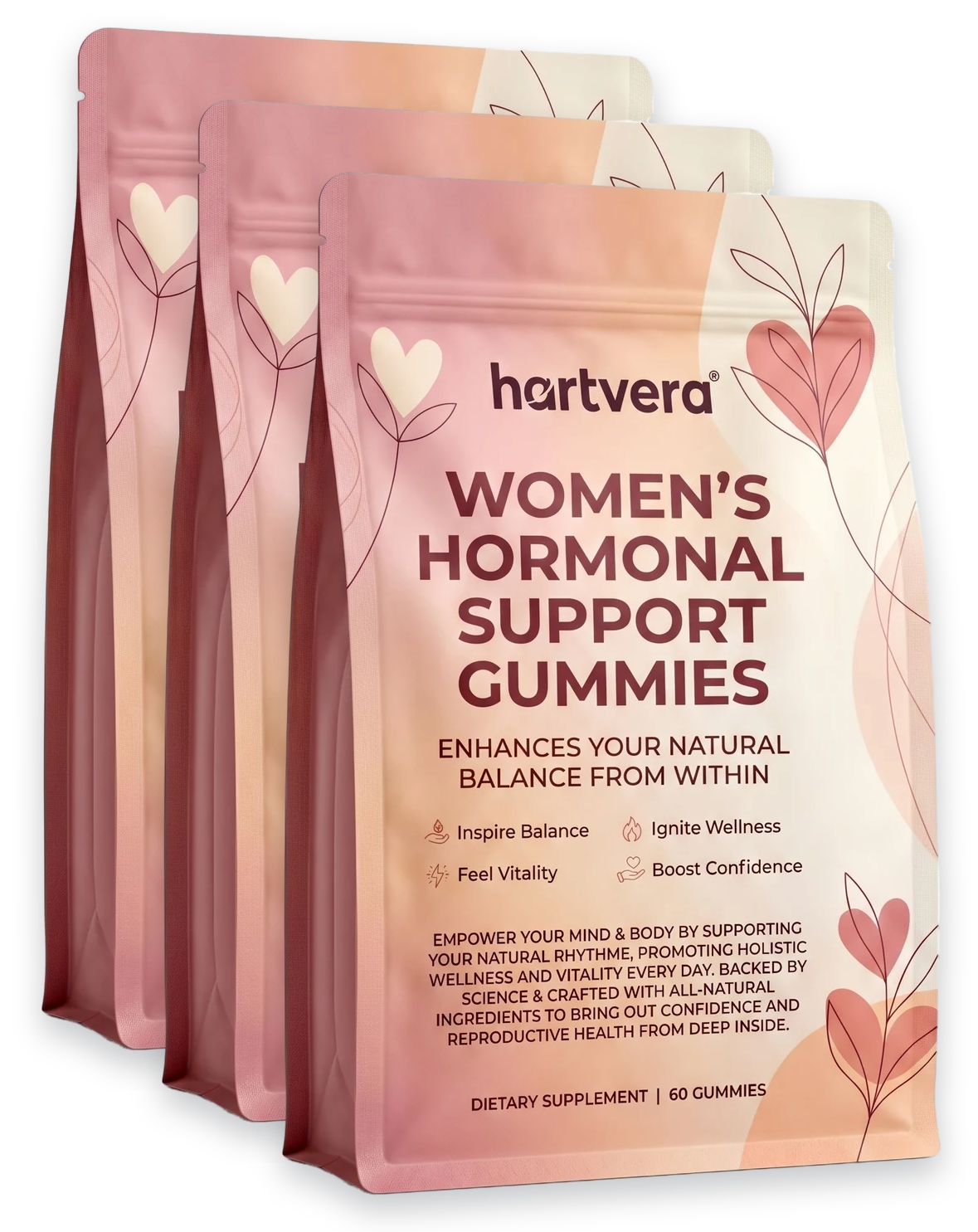 I keep these in a little zip pouch in my work bag because my schedule is all over the place. I take two around 7pm before my shift or sometimes at 6am when I get home, just depends. My cycle had been off for like three months straight and its been more predictable lately. Not perfect but better. The gummies are soft and taste kind of like fruit punch, nothing weird. Hartvera packages them in a bottle that actually closes properly, which sounds dumb to say but the last brand I tried would pop open in my bag.